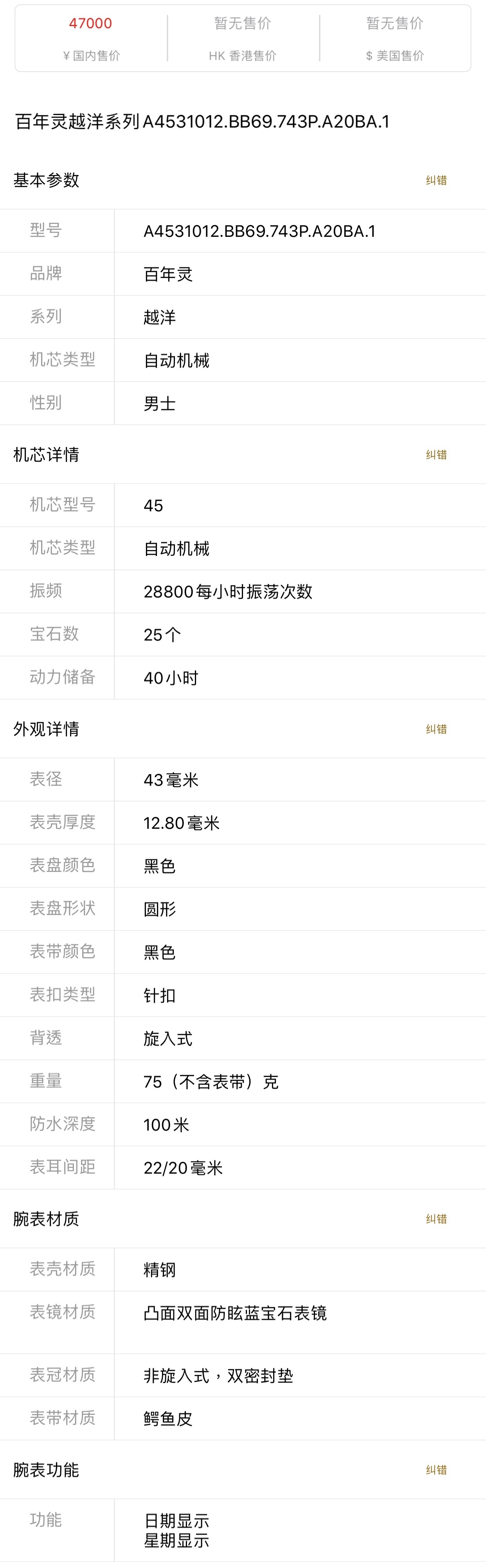 Breitling Transocean Day-Date Automatic A4531012.BB69.743P.A20BA.1